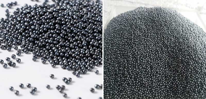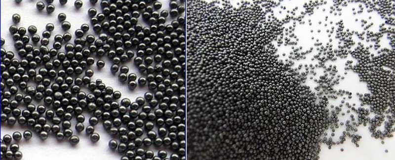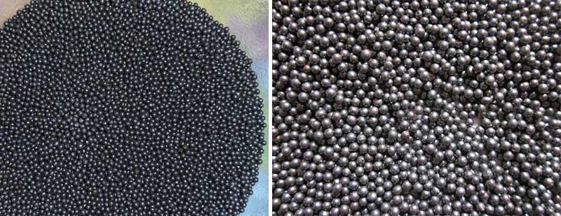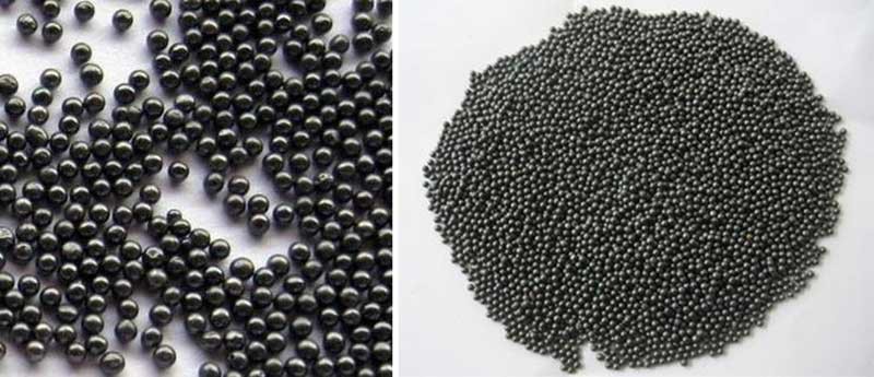 鑄鋼丸是由高質量的鋼碎料制成的,首先將其溶化,然后用高壓水噴射式使熔融的鋼水形成小球狀。形成的丸體再次加熱以凈化勻質,然后進行淬火處理。淬火后的丸體在熔爐內進行烘干并重新加熱回火以達到適當的硬度,回火處理的鋼丸通過機械篩網被分選成符合SAE標準的11個等級以用于拋丸設備。不同粒度和硬度的產品用于不同的工藝,如表面強化等。